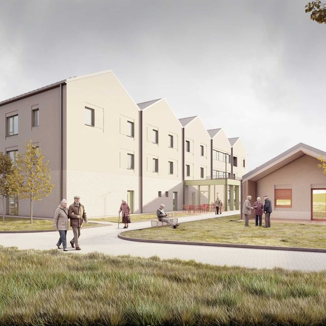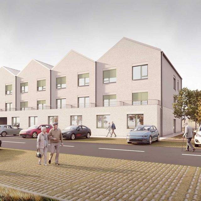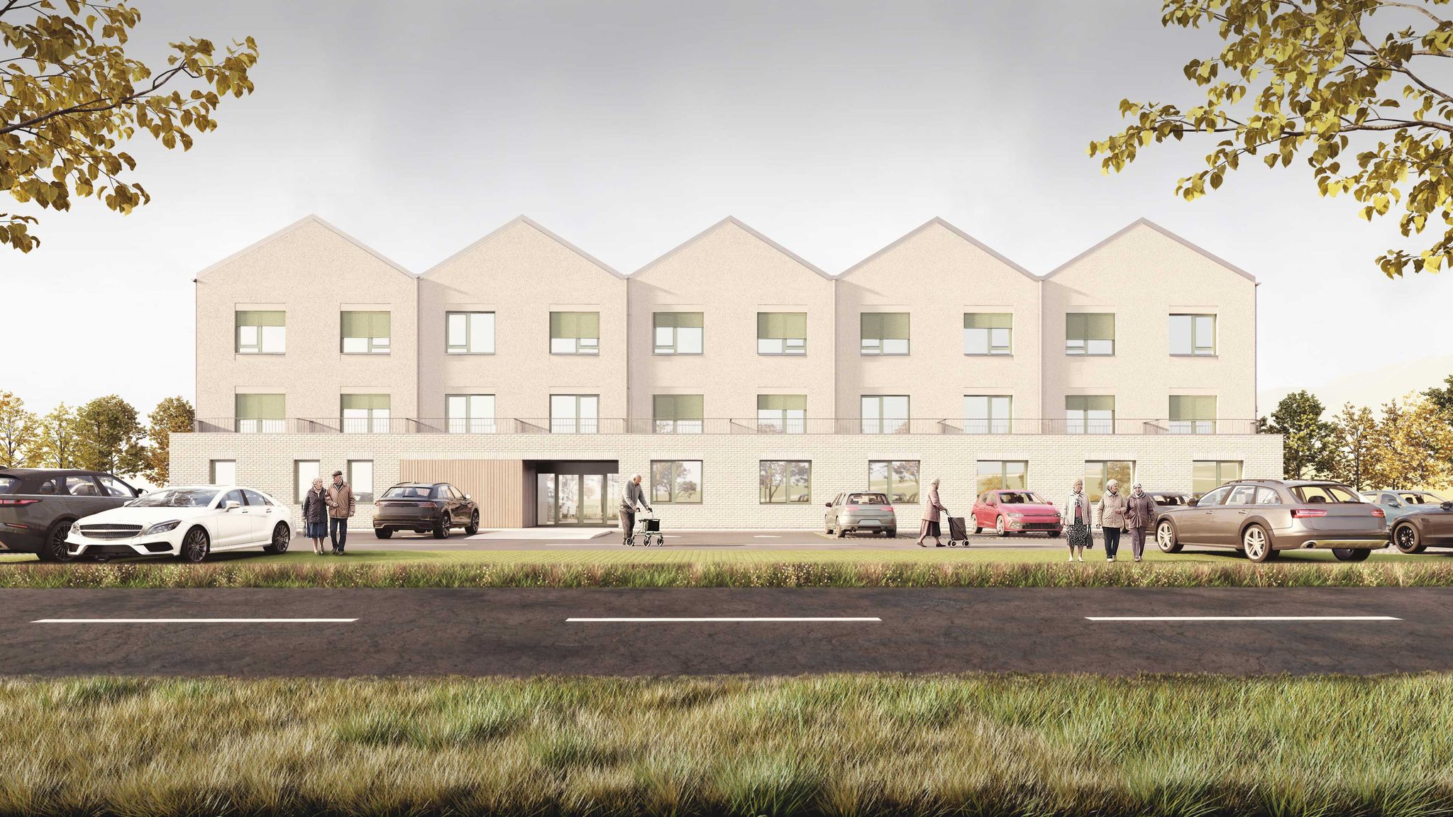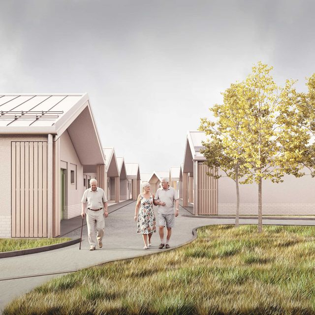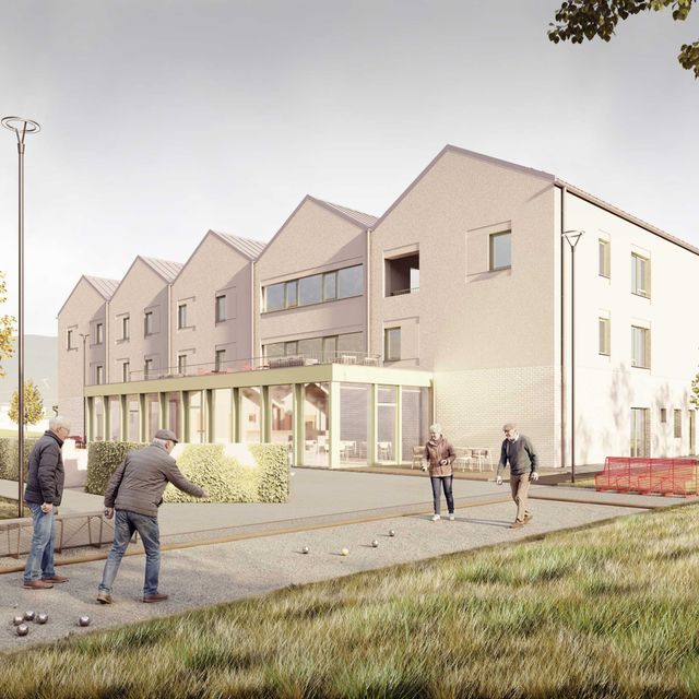 Na pozemku sa nachádza 35 samostatných dvojizbových plne vybavených obytných jednotiek. Každá s celkovou úžitkovou plochou 49,71 m2 . Tie slúžia pre potreby centra ako kapacita pre aktívnych seniorov. Jednotky sú spojené do zrastlice 5-tich domov a jej odzrkadlením vzniká akýsi klaster 10-tich domov s malým nádvorím. Celkovo je na území situovaných 3,5 klastra, ktorý každý z nich má svoje farebné signifikantné označenie. Obytné jednotky sú zasadené do prostredia, ktoré je dotvorené záhradnou úpravou s rôznymi exteriérovými atrakciami a parkovým mobiliárom. Každý klaster je prístupný pešou a automobilovou areálovou komunikáciu pre zásobovanie a prístup sanitky, resp. požiarneho vozidla. Stacionárne parkovacie plochy sú zabezpečené pred centrálnou budovou. Komplex ma zabezpečený servis, záhradný servis a celodennú ostrahu. Komplex bude oplotený. Konštrukčný systém pri všetkých stavebných objektoch je z keramického murovacieho materiálu. Strešné roviny sedlové sú konštruované z drevených klincovaných väzníkov. Fasáda objektov je kontaktná s možnosťou stvárnenia kompozície viacerých druhov štruktúry a zrnitosti. Parter centrálneho objektu ako aj sokel malého objektu samostatnej jednotky je navrhnutý ako keramický obklad typu klinker. Na fasáde je tiež použité termodrevo a decentný doplnok k materiálovej atraktivite architektúry a prostredia. Farebné riešenie fasád neutrálnych tlmených farieb vhodne dopĺňajú pastelovejšie farby hliníkových okenných rámov. Rytmus sedlových tvarov striech je hlavným signifikantom vonkajšieho vzhľadu architektúry komplexu. Objekty sú nepodpivničené. Komplex zariadenia pre seniorov je napojený na všetky inžinierske siete. Dažďová voda sa bude likvidovať na pozemku cez vsakovacie bloky. Retenčná nádrž bude slúžiť aj ako zásobník vody na polievanie. V návrhu uvažujeme s dažďovými jazierkami a inými vodo-zádržnými opatreniami. Návrh predbežne uvažuje s inštáláciou FVE Panelov na strechách. V centrálnom objekte je navrhnutá centrálna rekuperácia vzduchu a v malých jednotkách sa uvažuje s použitím malých lokálnych rekuperačných jednotiek. Zdroj tepla je navrhnutý ako plynové kotle umiestnené centrálne v hlavnej budove a kolektorom rozvedené do záhradných klastrov. Vo všetkých obytných a administratívnych miestnostiach je podlahové vykurovanie, zázemie a technické miestnosti sú doplnené s konvenčným vykurovaním. Na všetkých oknách sú navrhnuté screenové rolety. Objekty sú vybavené štandardami prislúchajúcimi DSS, resp. typológiou zdravotníckych zariadení.